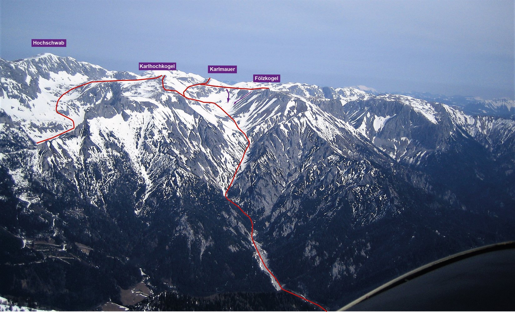 Ausgedehnte Skitour auf dem Karlhochkogel vom Ghf. Bodenbauer. Vom Gipfel hat man einen schönen Blick auf die Hochschwab Südwand und kann auch über den Karlgraben abfahren.