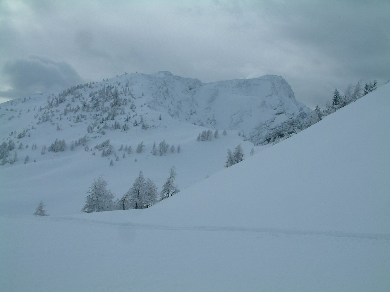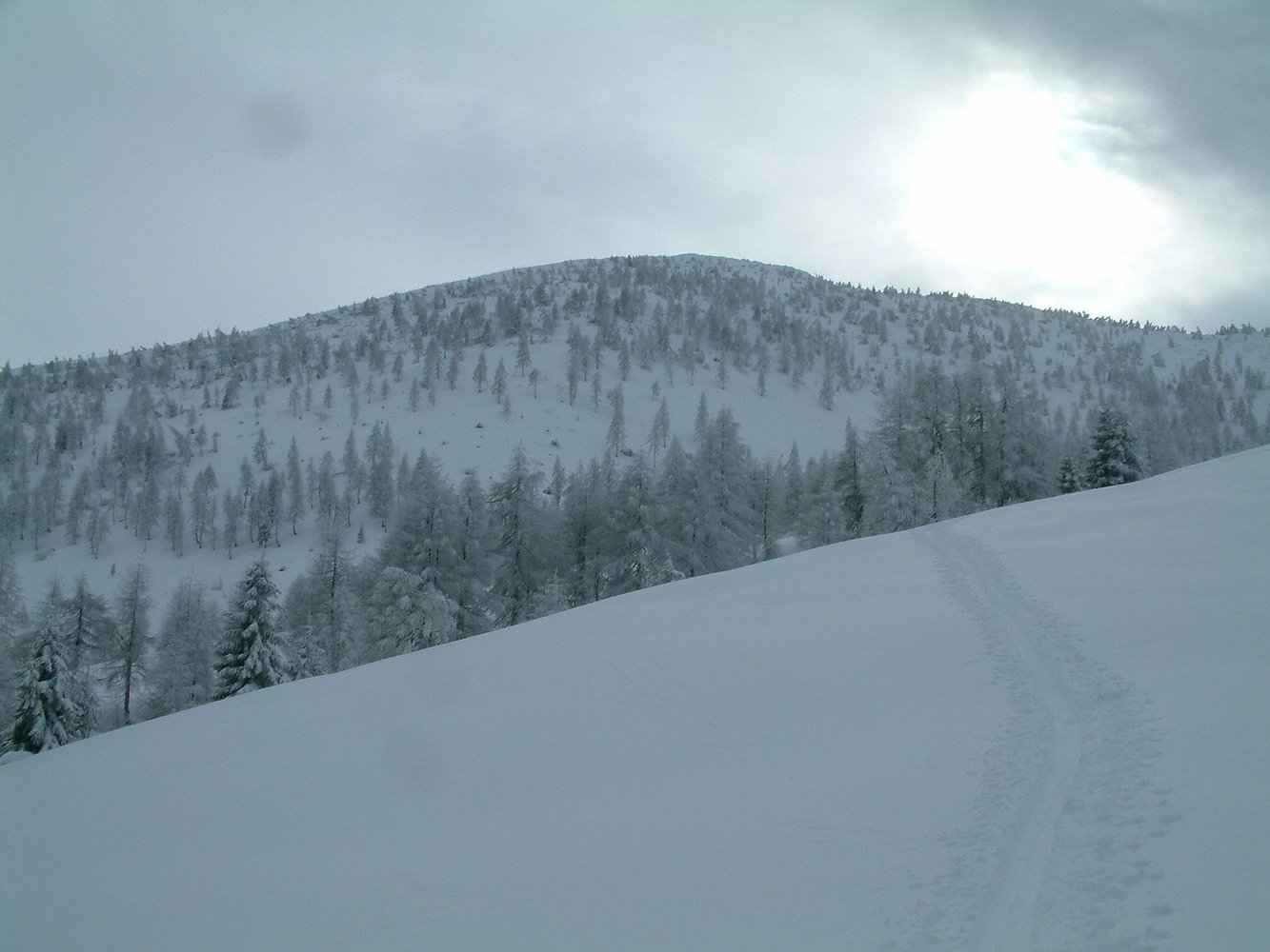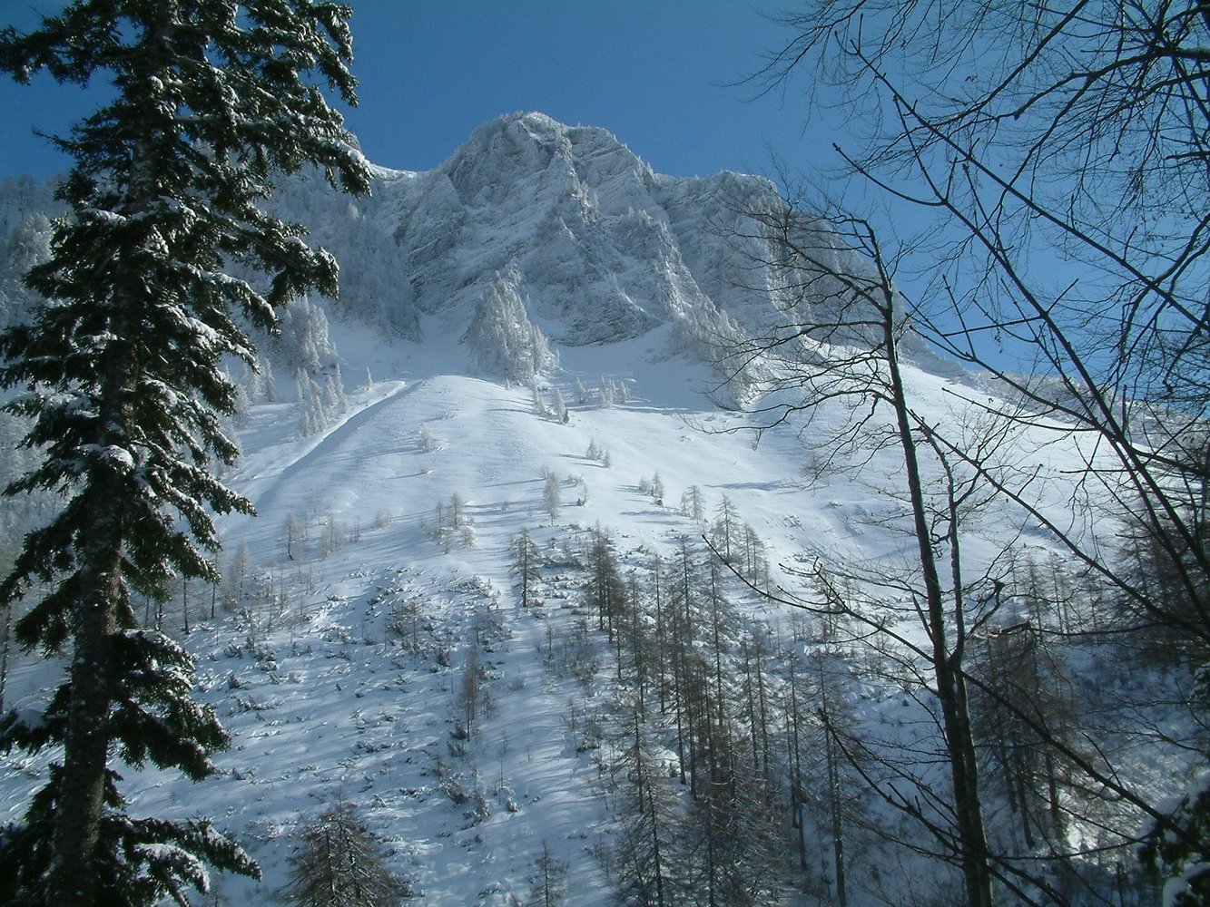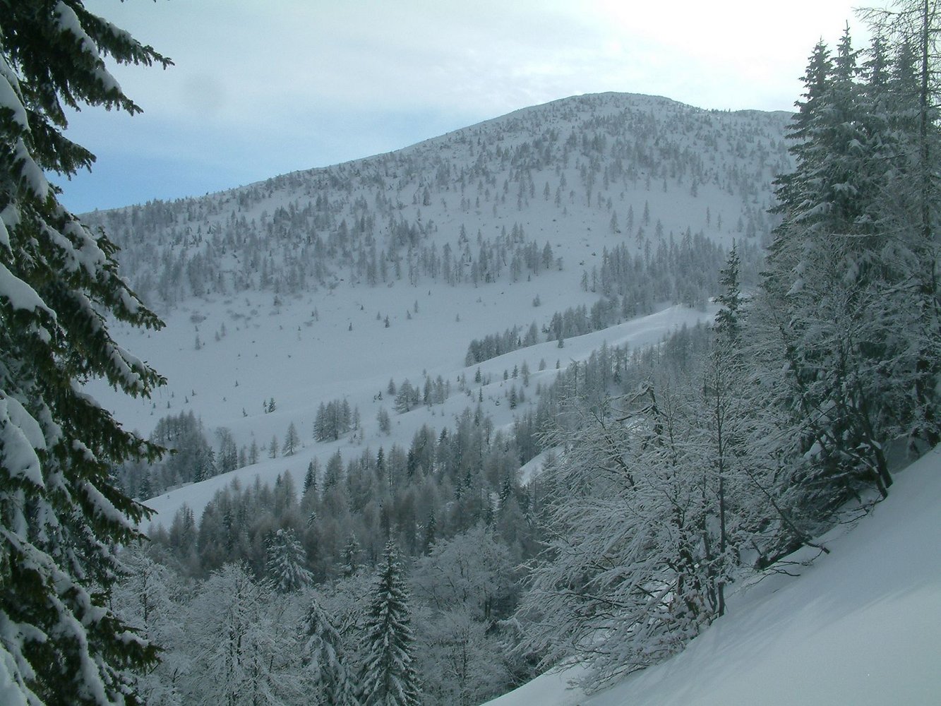 ABFAHRT: Die Abfahrt erfolgt entweder entlang des Aufstieges oder direkt vom Gipfel in Richtung Nordost. Nach einer kurzen Querung kann man über weitgehend freie Flächen bzw. lichten Hochwald abfahren, bis man wieder die Forststraße erreicht über die man aufgestiegen ist.