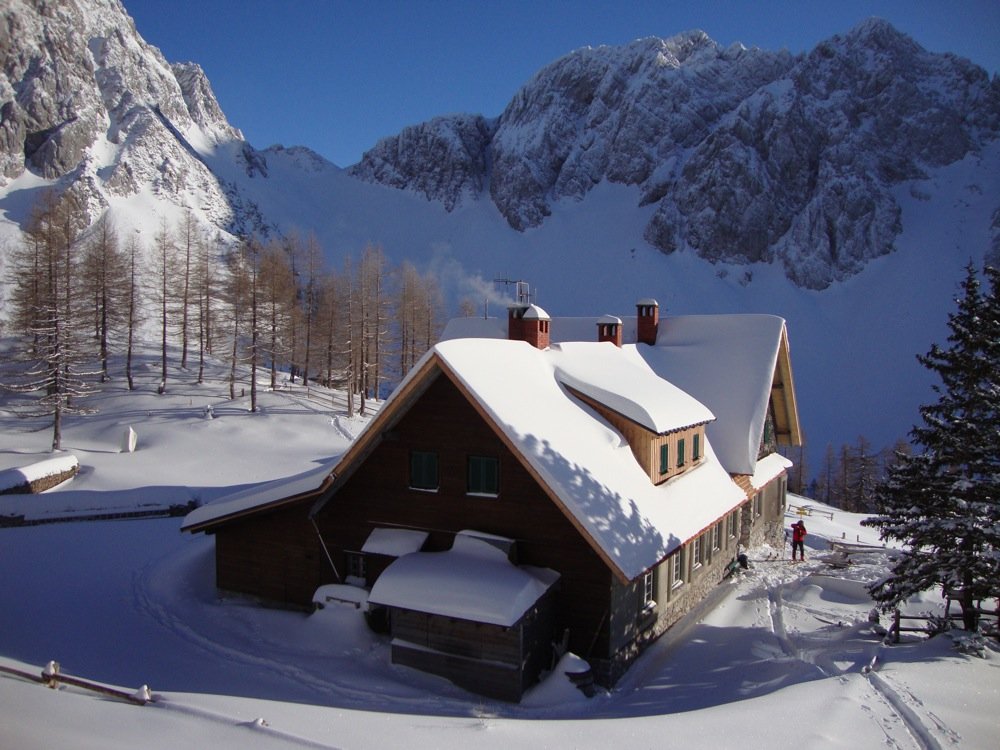 In Feistritz/ Rosental biegt man ins Bärental (Beschilderung). Über die auch im Winter geräumte Straße bis zum Winterparkplatz bei der Stouhütte (960m)