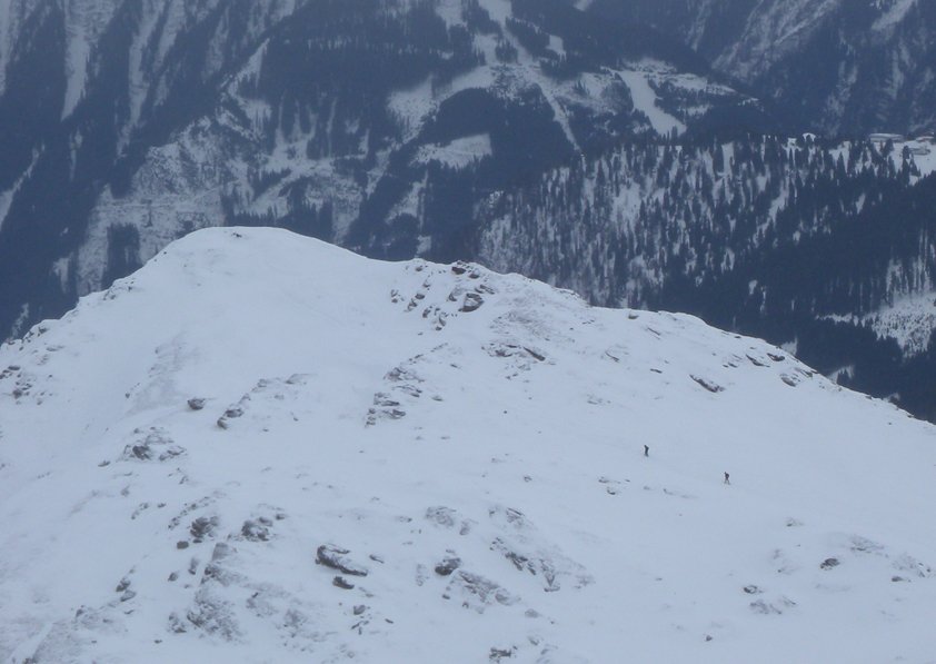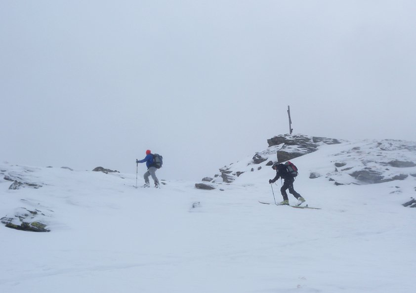 Bei unsicheren Schneeverhältnissen wählt man den Kammaufstieg im Bereich des Sidanjochs um in einem großen Bogen auf den Gipfel zu gelangen.