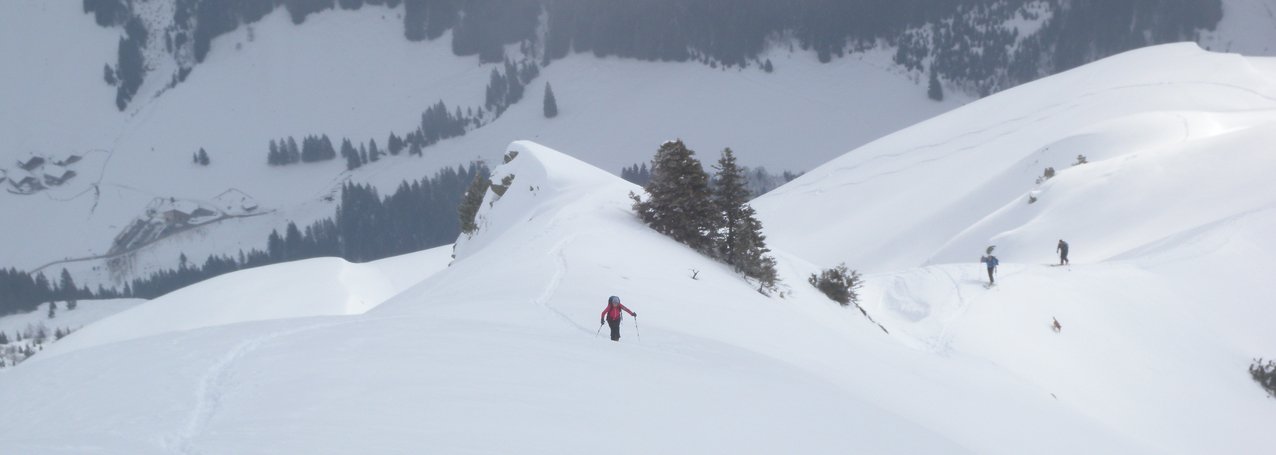 Der Lämpersberg Nordostgrat ist eine schöne und am Ende ausgesetzte Alternative zu dem bekannten und meist sehr überlaufenen Ostanstieg auf den Lämpersberg. Das Highlight ist der schmale Grat kurz vor dem Gipfelkreuz, der je nach Schneebeschaffenheit und Überwechtung ein kleines alpines Abenteuer sein kann.