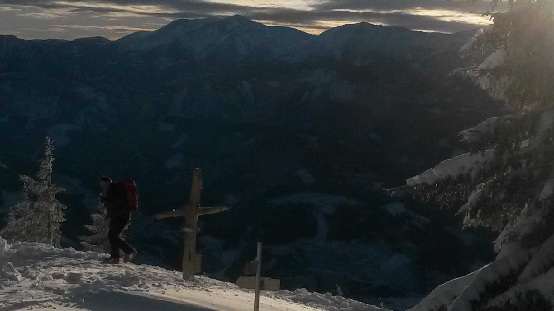 Aufstieg: Vom Parkplatz wenige Meter der Straße auf die Klinke Hütte folgen, dann links über die Wiese abschneiden und gleich nach der Wiedervereinigung dieses Abschneiders mit der Forststraße über den darüberliegenden Schlag zur nächsten Forstraße. Auf ihr wenige Meter nach links und rechts über den Gratrücken zur nächsten Forstraße hinauf. Hier trifft der Aufstieg auf jenen der über die Skipiste geht. Es geht am Gratrücken weiter, bis man am Grat erstmals nach Trieben hinab sieht. Hier links dem Grat nach Osten zum Gipfel - das Kreuz steht etwas weiter westlich bei der Trieben Talsicht.