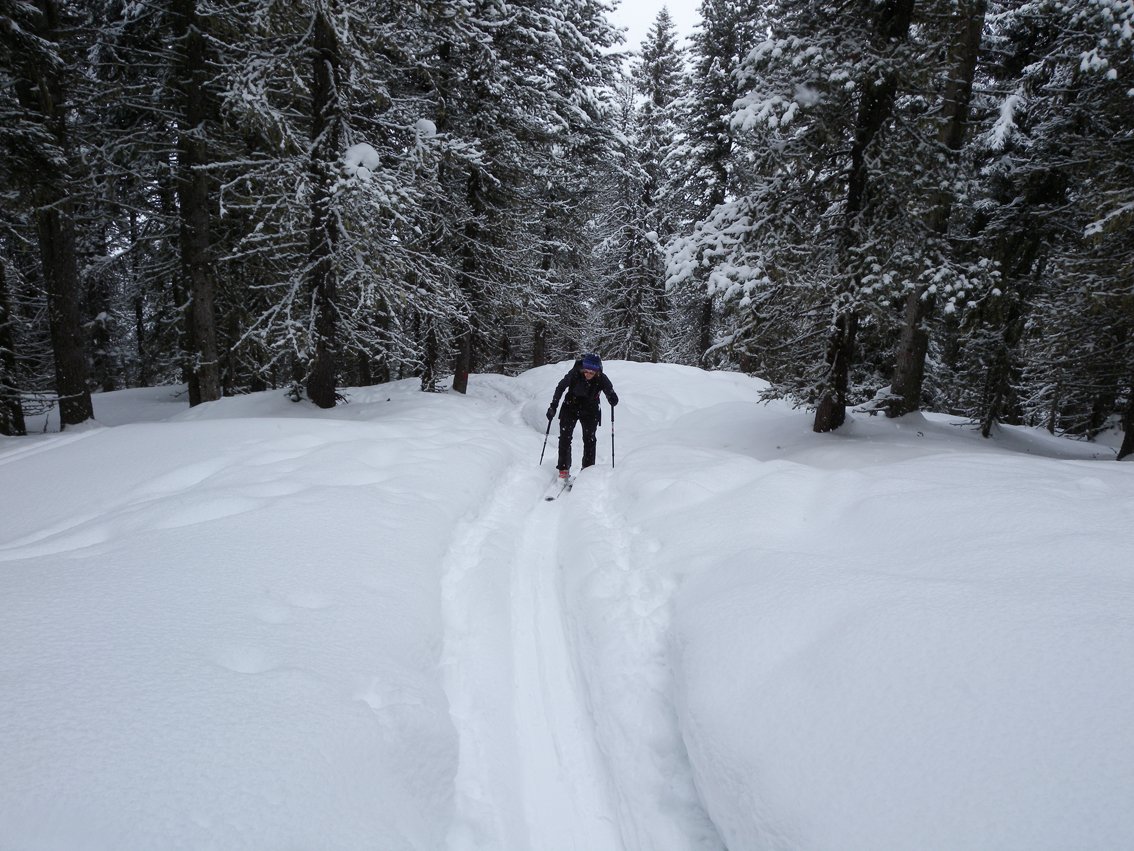 Abfahrt wie Aufstieg - ab der Largozalm fährt man auf dem Forstweg ab. Unten teilt sich der Forstweg, es gibt eine extra Abfahrt für Skitourengeher (nicht auf der Rodelbahn abfahren!).