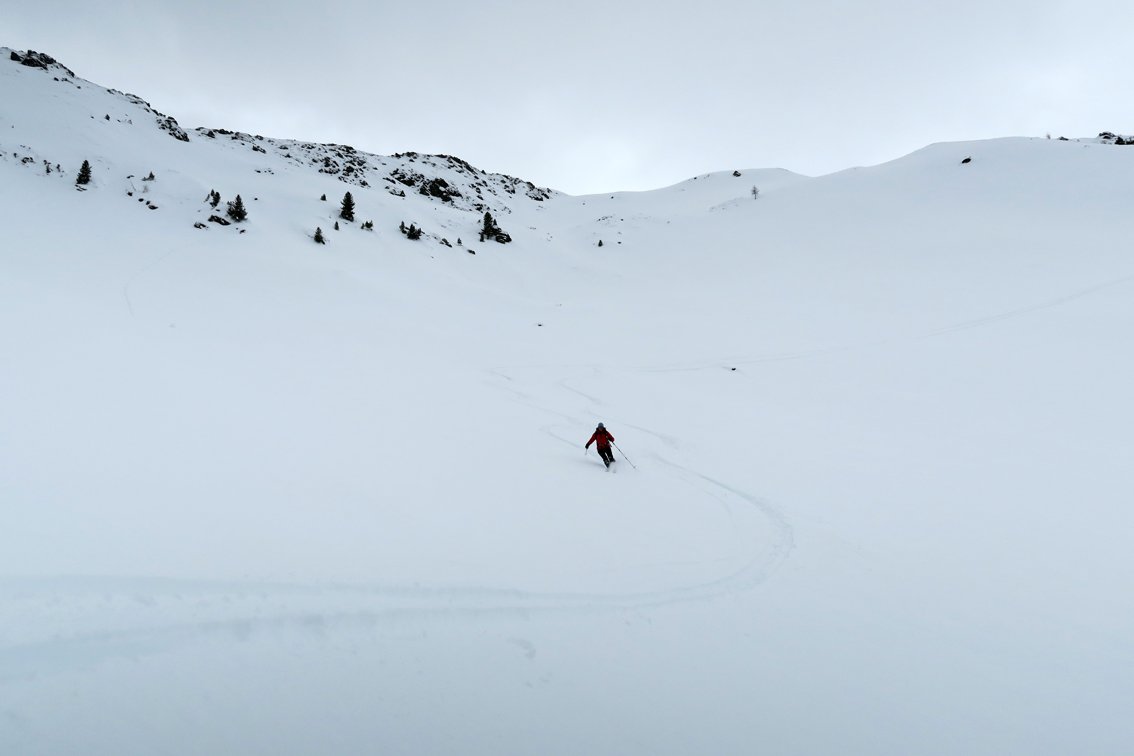 Der Laubkogel ist ein selten besuchter Skigipfel, der Grund ist der ca. 6,5 km lange flache Talzustieg bis vor die Kar-Hochalm. Belohnt wird man für die vielen flachen Meter mit einem langen, steileren Kar, welches direkt hinauf zum Gipfel zieht.