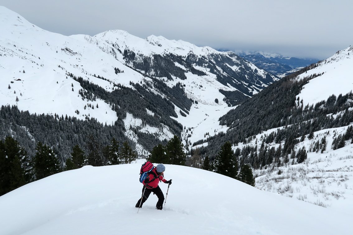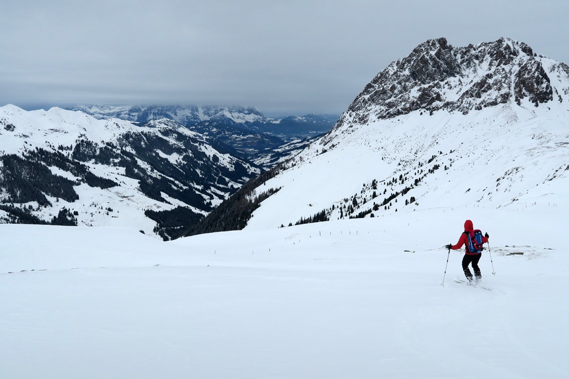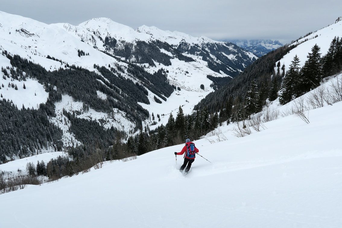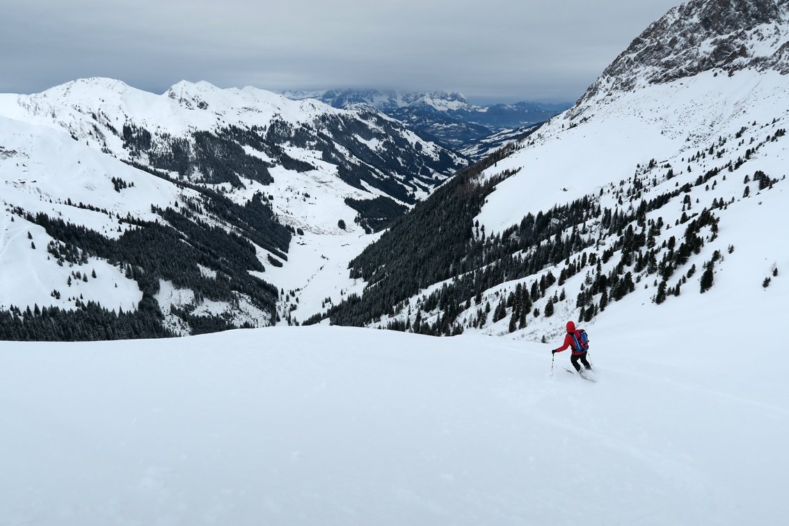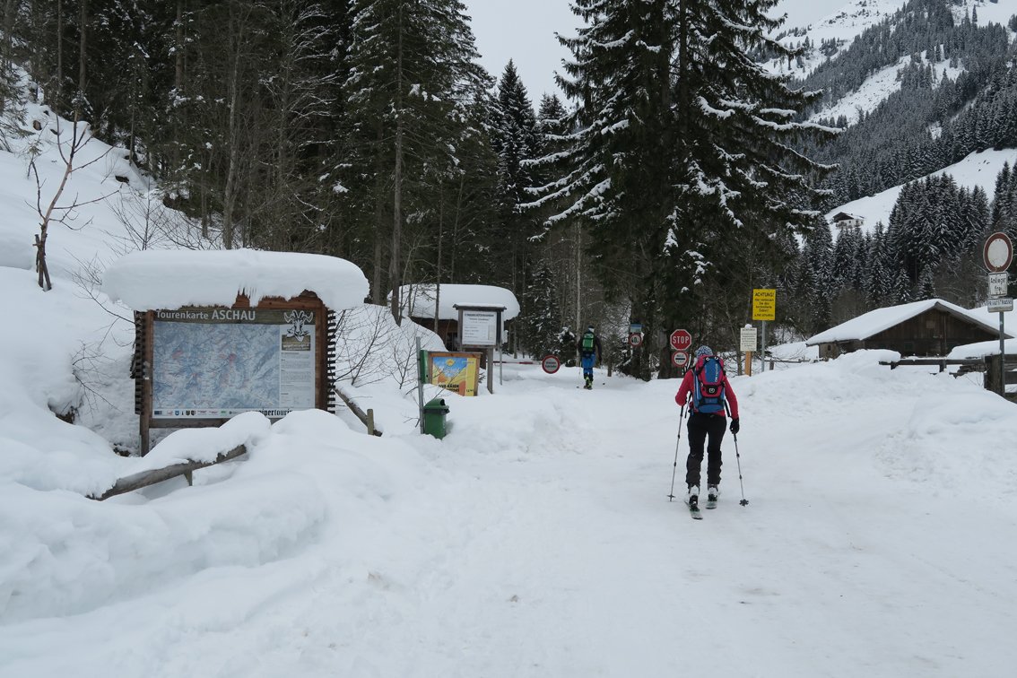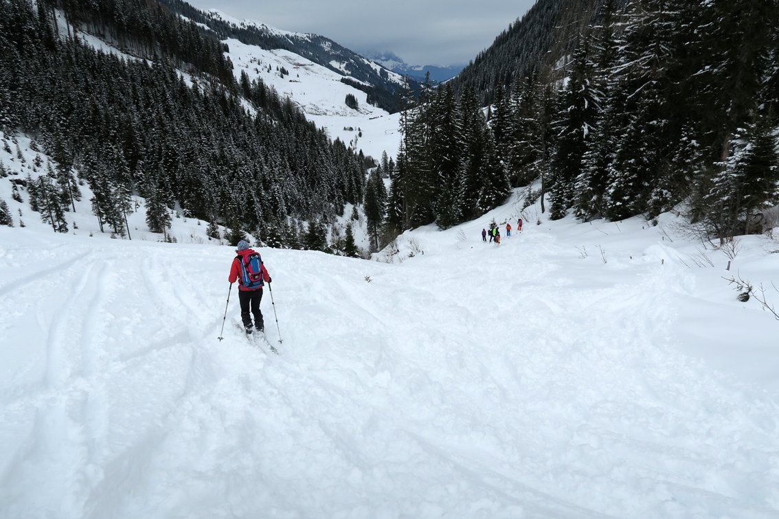 Im Tal gibt es meist eine Spur, da oft Freerider vom Skigebiet Wildkogel bis nach Aschau fahren.