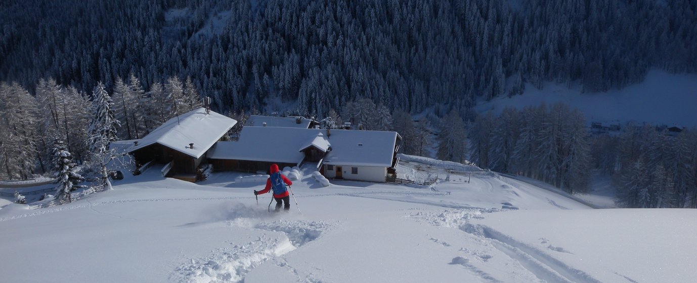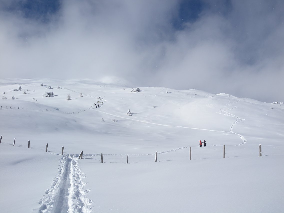 Anmerkung: Man kann von Vinaders bis Au (Häusergruppe kurz vor Obernberg) fast überall in Richtung Leitner Berg aufsteigen. Oft sind schon Spuren vorhanden, mit etwas Glück findet man eine Spur und einen ausgeschaufelten Parkplatz.