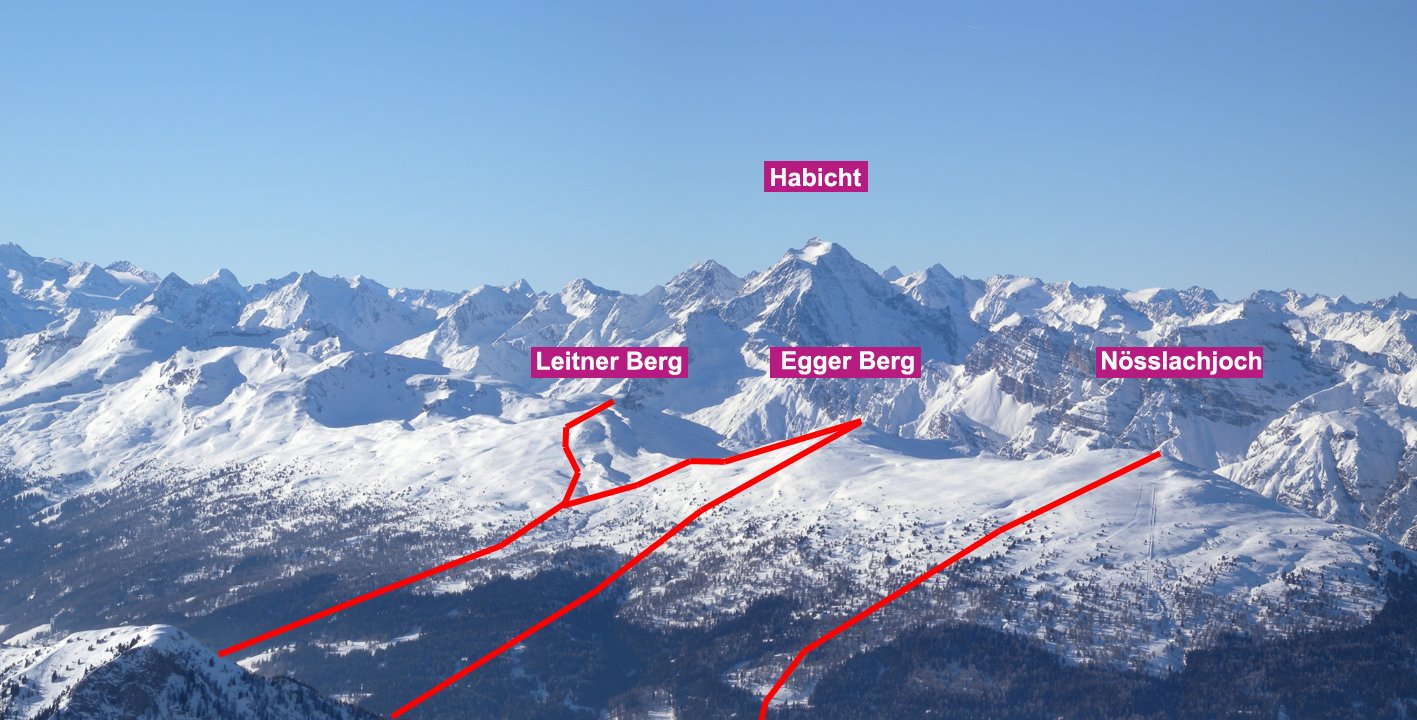 Achtung: Die Berge Leitner Berg, Egger Berg und Nösslachjoch sind sehr stark dem Wind ausgesetzt (vor allem bei Föhn)!!!