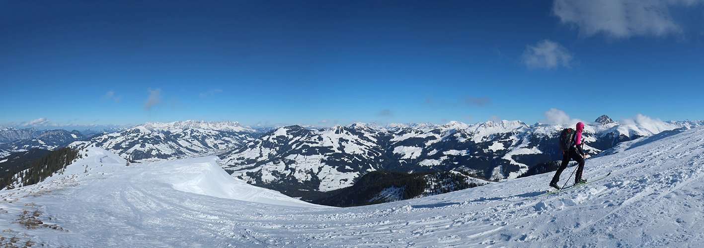 Die Skitour auf den Lodron ist der Einsteiger-Klassiker im Windautal. Sanfte Skihänge, welche durch Forstwege unterbrochen werden, führen hinauf zum Kamm. Oben dann auf dem breiten Kamm zum flachen Gipfelplateau mit dem großen Gipfelkreuz. Tolle, sehr beliebten Skitour, die auch bei etwas unsicheren Schneeverhältnissen bei vernünftiger Spuranlage gemacht werden kann. Belohnt wird man mit einem schönen Weitblick über die Kitzbüheler Alpen und einer landschaftlich schönen, einfachen Aufstiegsroute.
