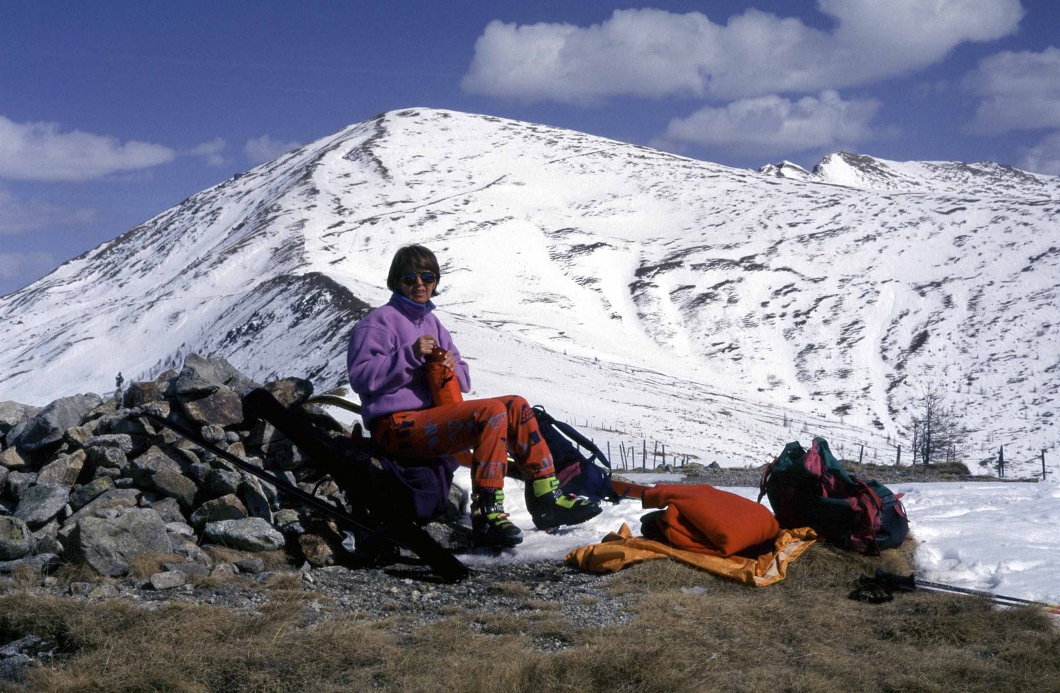 Abfahrt Richtung SO zunächst über herrliche weite Hänge, später durch lichten Wald zur Falkerthütte. Von hier über eine Forststraße zurück zum Ausgangspunkt.