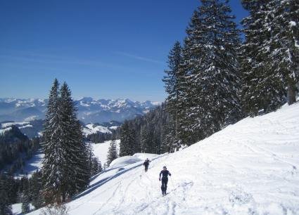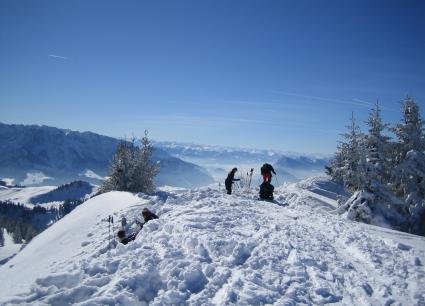a) Von Sachrang: Vom Parkplatz über die Langlaufloipe und der Forststraße (Rodelbahn) folgen. Bei der ersten Kehre, kommt von links die Spur von Huben dazu, weiter bis zur Talalm (erste Wiese). Hier geht man links über die Wiese und schneidet die Straße ab. Nach der Talalm folgt man der Straße noch rd. 300 m und verlässt diese bei der ersten Waldschneise nach links. Über Weisen aufwärts zur Schreckalm. Hier waagrecht nach rechts queren und die erste waldfreie Möglichkeit links hinauf bis unter den Grat. Nun rechts bis zum Gipfel.