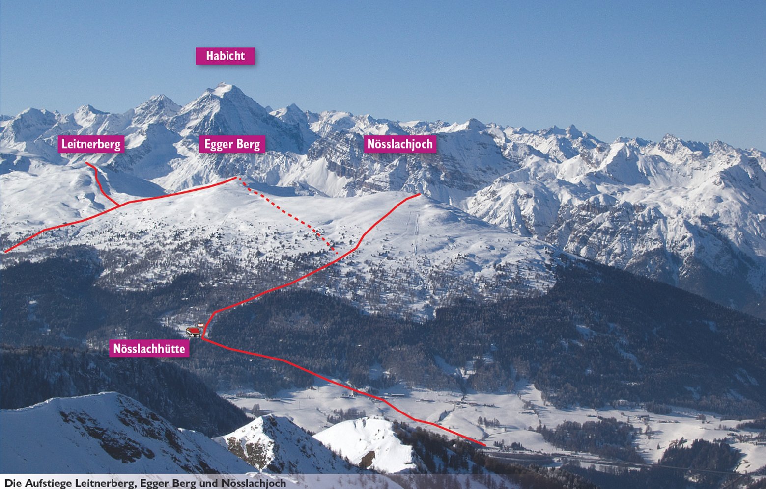 Schöne leichte Skitour im Nahbereich von Innsbruck. Man beginnt mit der Tour direkt vom Autobahnparkplatz Nösslach, somit ist die Anreise auch extrem kurz! Die Tour wird gerne zum Saisonbeginn oder nach intensiven Schneefällen gemacht und eignet sich wegen der Rodelbahn bis zur Nösslachhütte auch gut als Familienunternehmung. Wegen der flachen Hänge und der Einkehrmöglichkeit in der Nösslachhütte ist diese Tour auch sehr gut für Kinder und Anfänger geeignet!