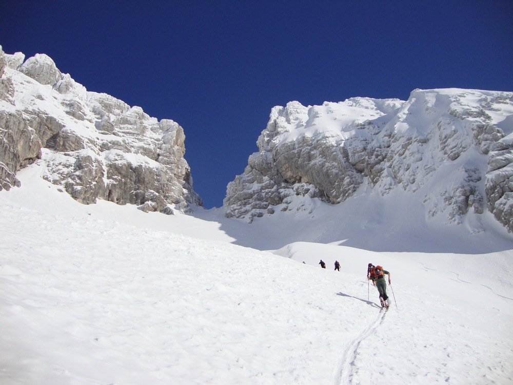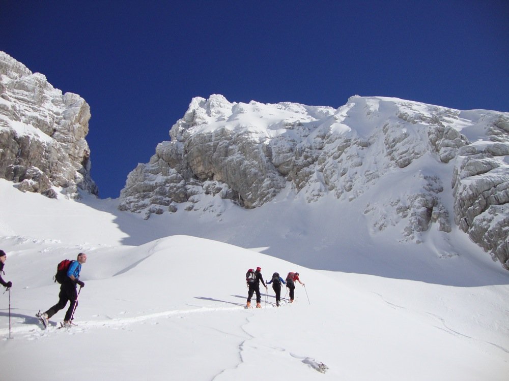 Ein weiterer Klassiker in der Montasch-Gruppe. Eine sehr schöne Skitour, die durch offenes Gelände und mittlere Steilheit besticht. Wie bei allen Touren in dieser Region kann man das klassische Julische-Ambiente in vollen Zügen genießen: Blauer Himmel, heller Kalk und viel Schnee sind die Zutaten für dieses Erlebnis! Leichte Orientierung!