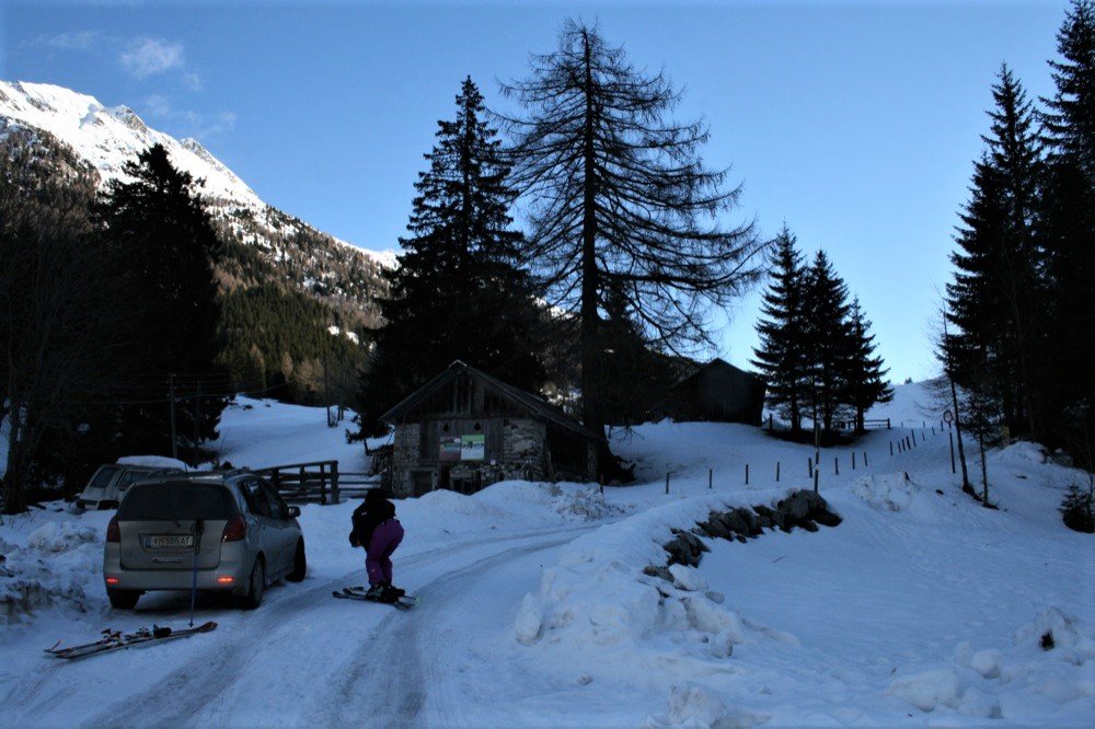 Von Kötschach- Mauthen (707m) fährt man über die B110 Plöckenpass Straße Richtung Plöckenpass. Etwa 1,7 Kilometer vor der Staatsgrenze befindet sich das Gasthaus „Plöckenhaus“, das im Winter geschlossen hat und jetzt als Ausgangspunkt dient.