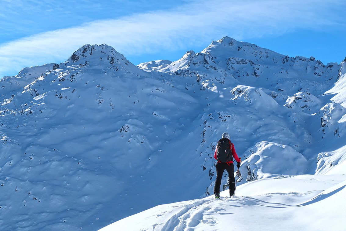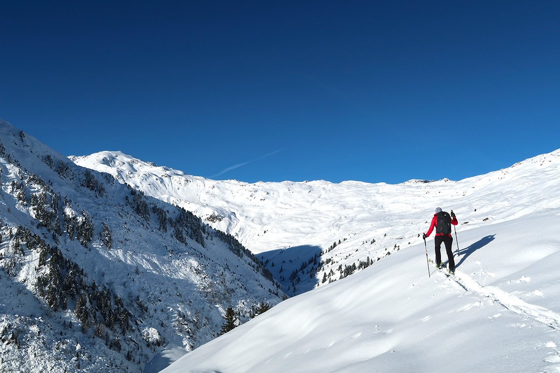 Beliebter Aufstieg von der Zillertaler Höhenstraße auf den Paradeskiberg der Tuxer Alpen. Die Tour hat nur in der Mitte und am Ende eine steilere Passage und ist über weite Strecken recht flach - mit kurzen Gegenanstiegen beim Rückweg.