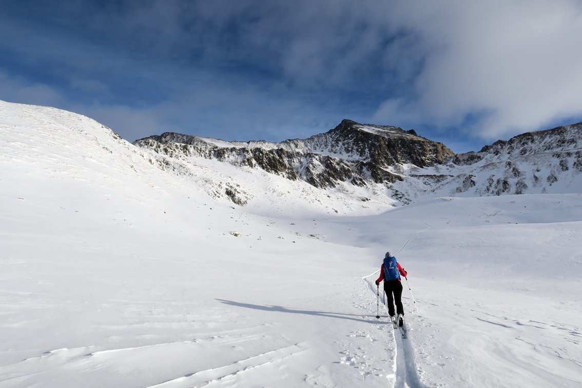 Der Rietzer Grieskogel ist einer der Klassiker im Kühtai, selten ist man alleine unterwegs. Bis auf den kurzen Steilhang nach den Narrenböden und dem rechts und links steil abfallenden, aber breiten Gipfelgrat ist die Tour leicht. Schöne Abfahrtshänge und ein schöner Gipfelgrat sorgen für Abwechslung. Toller Blick vom Gipfel hinunter nach Telfs und die Mieminger-Kette. Wer den Gifelgrat nicht machen will (bei Schneemangel oder wegen Überwechtung) lässt es in der Scharte gut sein.