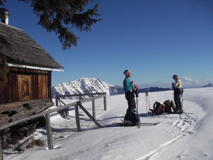 Der Ringkogel ist auch gut für eine Besteigung mit Schneeschuhen geeignet. Mit Schneeschuhen ist es günstiger, die Forststrasse bis zu ihrem Ende (Ofenauer Fürhaupt) zu verfolgen und dann am Kamm über das Hocheck zur Wiesenalm aufzusteigen. Diese Aufstiegsmöglichkeit ist auf der Übersichtskarte blau eingezeichnet.