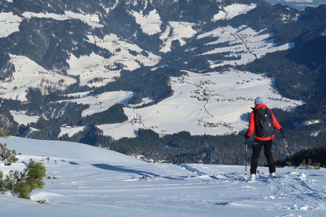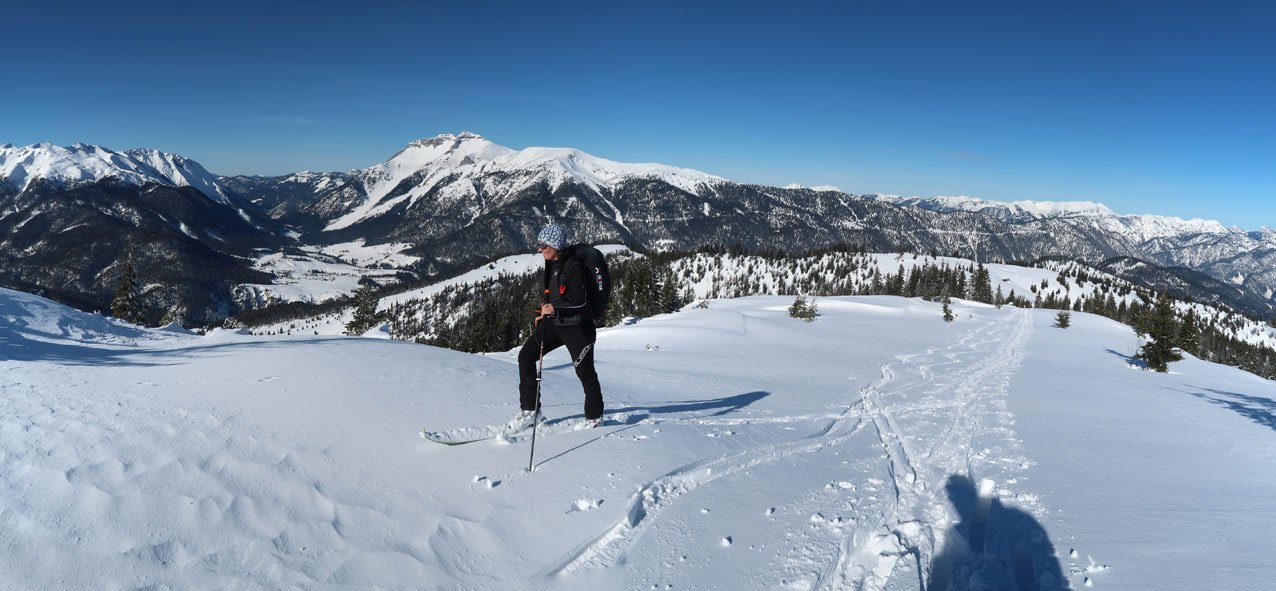Der Weg von Wimm bis hinauf zum Roßkokgel ist eine landschaftlich sehr eindrucksvolle Skiwanderung. Skitourengeher, die Abfahrtshänge suchen, werden dort nicht fündig, wer aber gerne das eindrucksvolle Rofangebirge hautnah erleben will, ist bei dieser Kammwanderung genau richtig. Die Route ist druchaus auch für konditionsstarke (7 Kilometer in eine Richtung) Skitoureneinsteiger geeignet, man muss ja nicht ganz bis zum Rosskogel vorstoßen und kann auf dem Kamm jederzeit umdrehen.