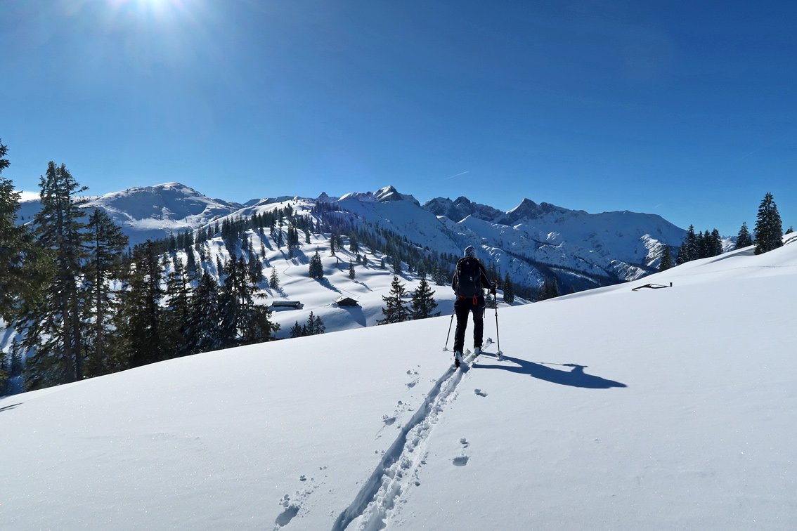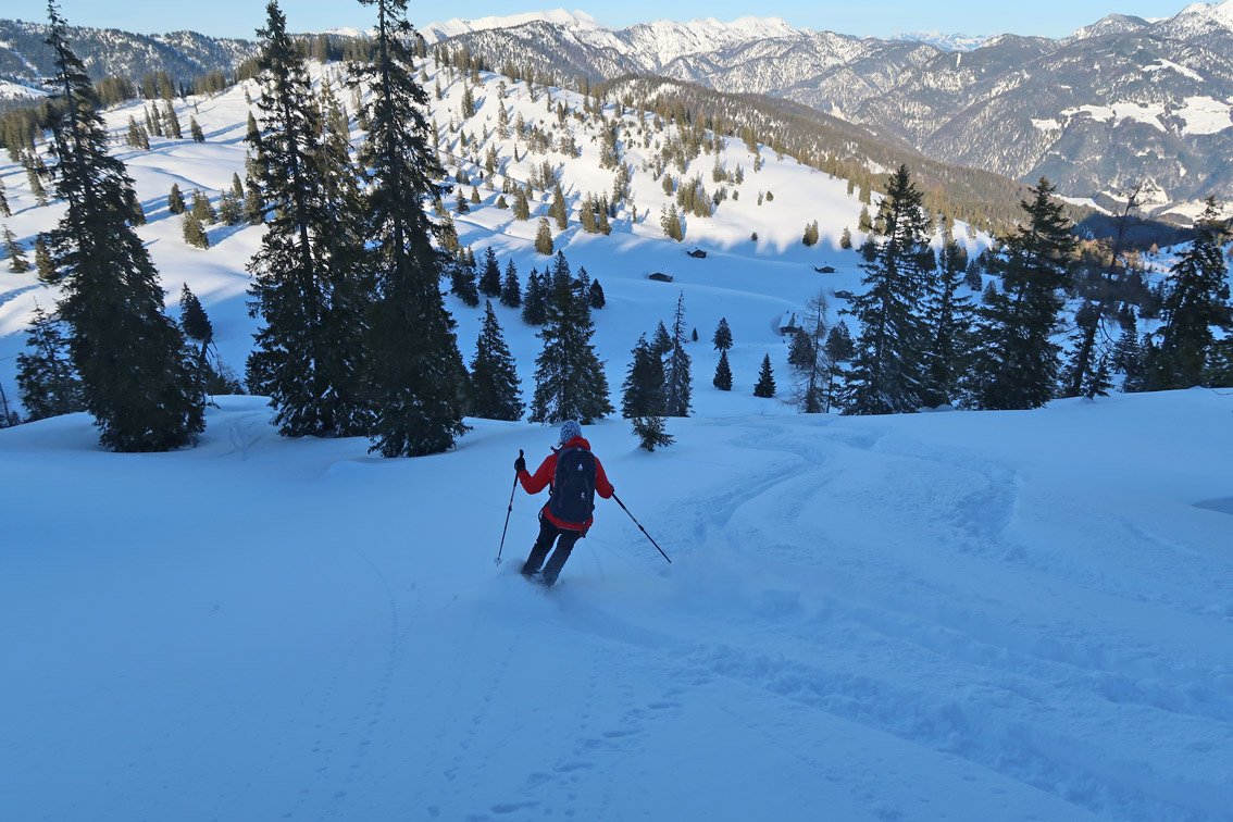 Wenn man sich auf dem Kamm hält, eine relativ sichere Skitour. Die Tour wird oft auch nur bis zum Kreuz hinter Anderl's Almhütte gemacht.