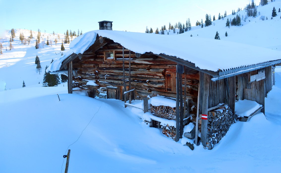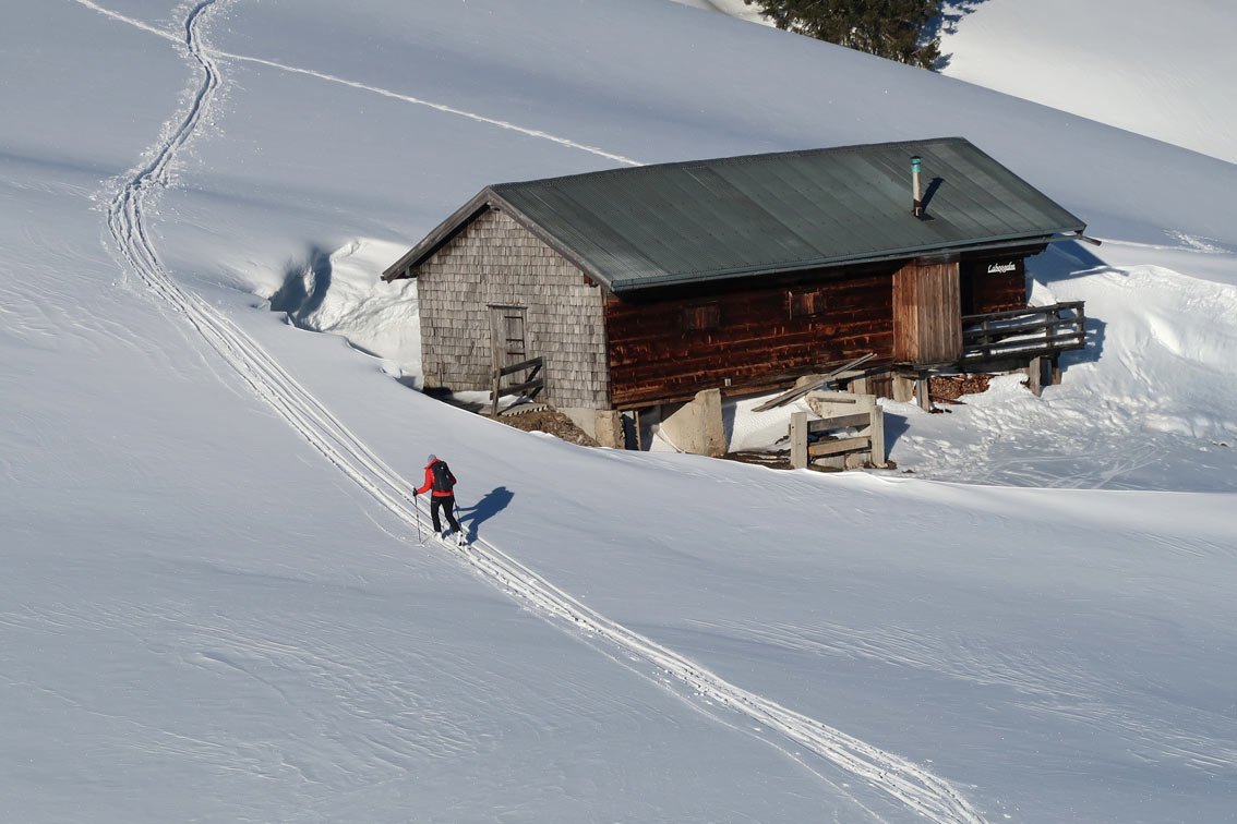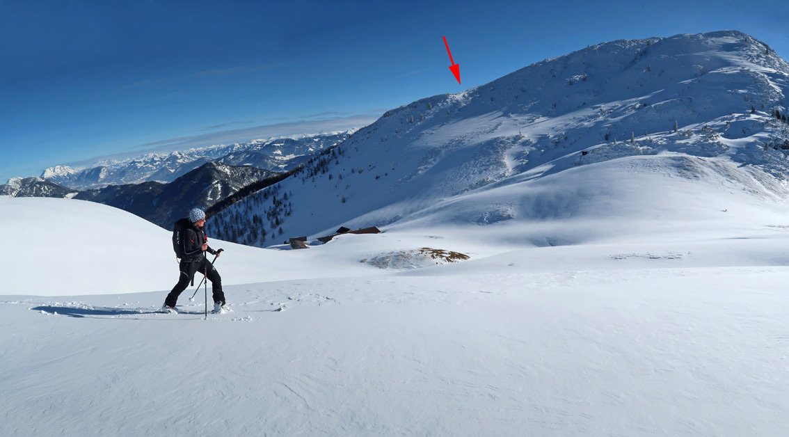 Zwischen Laberggalm und Kreuzeinalm Hochleger kann man auch die östlich, etwas unterhalb des Kammes verlaufende Forststraße nehmen. Auf dem Kamm ist man aber schneetechnisch sicherer unterwegs.