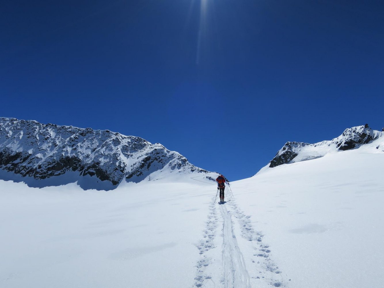 Die beliebteste, aber auch eine der längsten Skitouren von der Franz Senn Hütte, die am Ende noch mit einem 700 m langen Blockgrat, den man zu Fuß überwindet, hochalpines Flair versprüht. Eine abwechslungsreiche Paradetour!