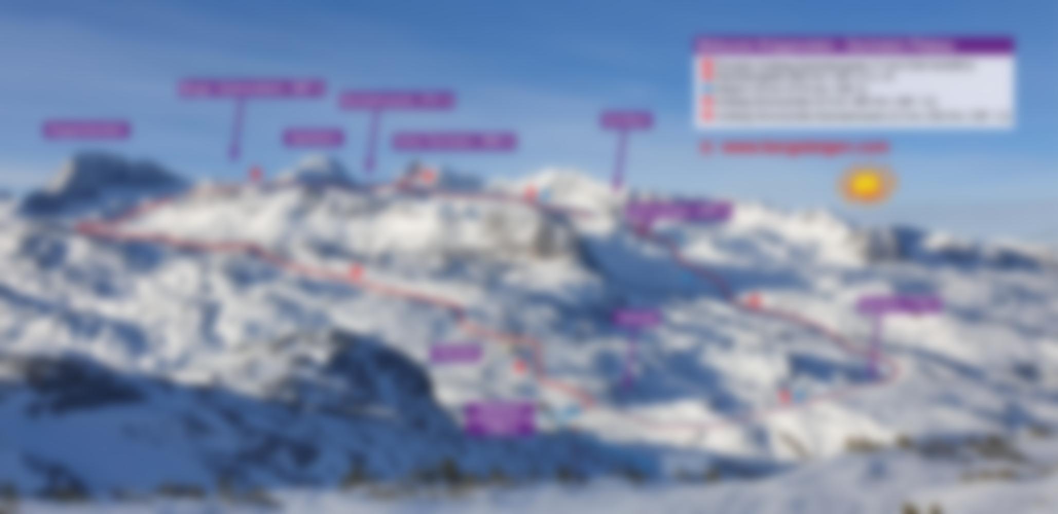Aufstieg: Von der Bergstation der Dachstein-Seilbahn über die Skipiste zur Gjaidstation (1788 m) abfahren. Nun zur Kaserne Oberfeld (1832 m) aufsteigen und ab der Kaserne den teilweise durchaus weit voneinander entfernten Stangenmarkierungen folgen. Unterhalb des Mittersteins kommt das Skigebiet des Dachstein-Gletschers in Sicht. Hier abfellen und zur Mitterstein-Sesselbahn abfahren. Mit der Sesselbahn und dem anschließenden Schlepplift in den Gjaidsteinsattel fahren.