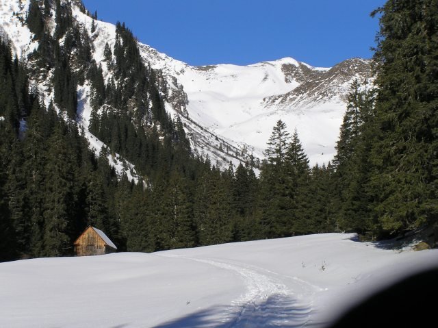 Vom Parkplatz im Bretsteingraben zuerst über die Strasse / Wiese vorbei am Grenimoar, dann links haltend (rechts gehts ins Seebachtal / Hochschwung) die Forstrasse hinein auf der rechten Seite des Höllengrabens; nach der Falbalm kommt man in das freie Gelände und kann entweder direkt den ersten Steilhang hinaufgehen (Lawinen?) oder etwas flacher links den Graben entlang nach rechts drehen und dann über die Querung Richtung Gipfel, je nach Schneelage (abgeblasen);