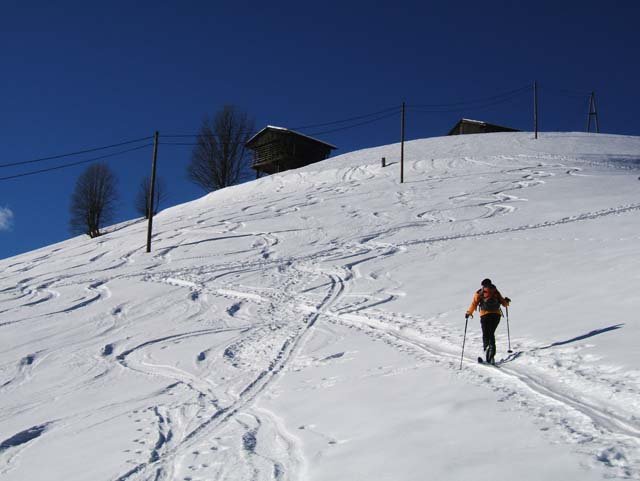 Bei sicheren Verhältnissen kann der Aufstieg zur Schulterhöhe fortgesetzt werden (anspruchsvoll).