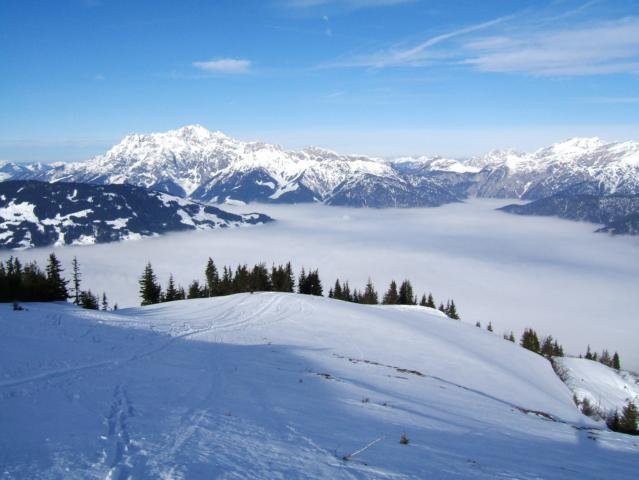 Sehr schöne und lohnende Route auf den wahrscheinlich beliebtesten Skigipfel der Dientner Grasberge. Die großen freien Almwiesen werden nur kurz von einem schmalen Waldgürtel unterbrochen - also perfekte Abfahrtshänge!