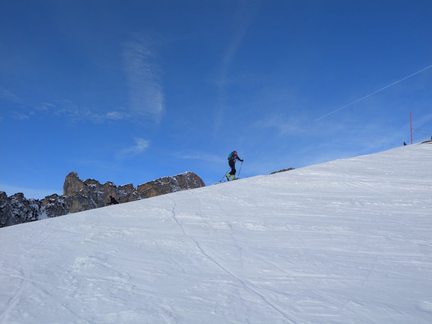 Alternative: Nach dem Gipfelhang rechts, durch eine Art Kanonenrohr, direkt zum Flachstück bei der Mauritzalm abfahren.