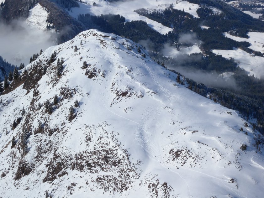 Anm.: Es wird auch über die extreme Nordflanke abgefahren, das sollte man sich aber vorher unbedingt anschauen (evtl. vom Gipfel des Kleberkopfes).