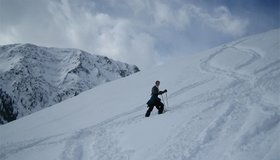 Nordostseitige Schitour über einen relativ lawinensicheren Rücken und ausgedehnte Almwiesen.