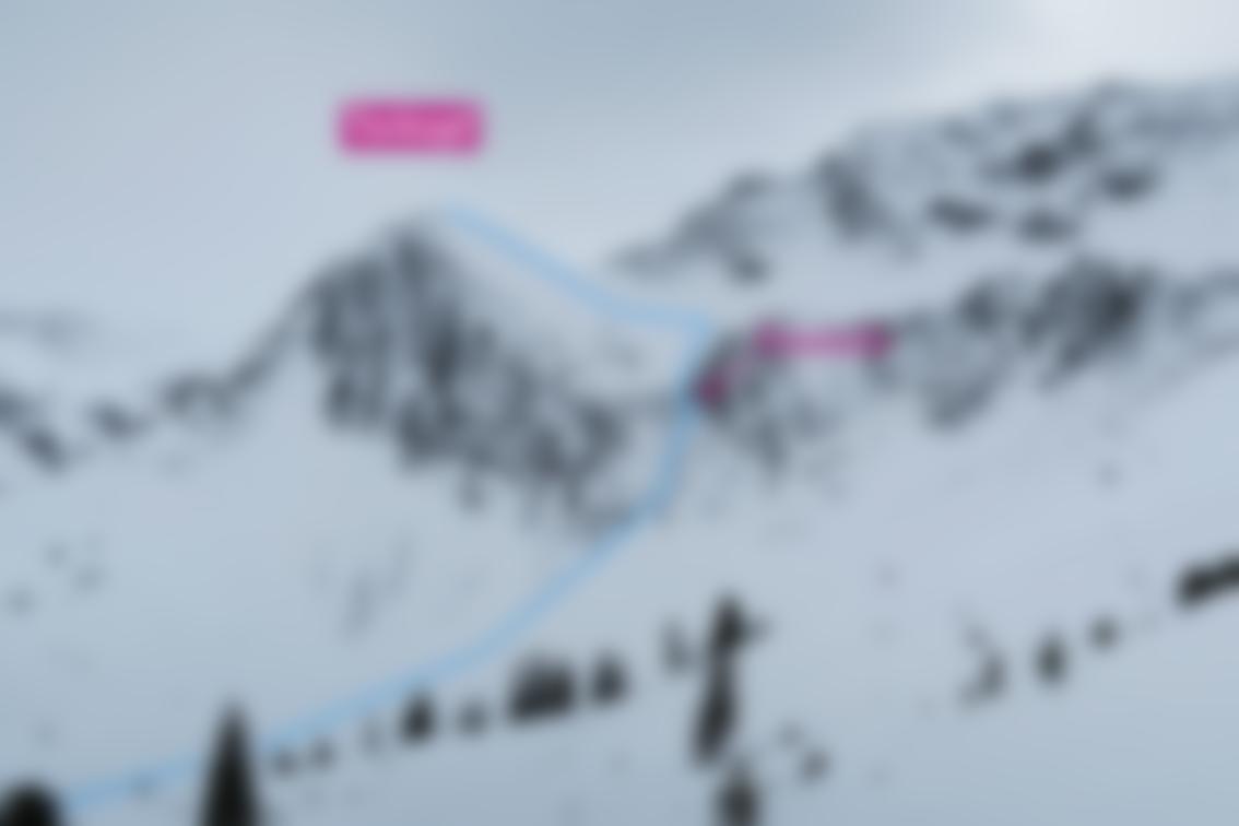 Alternativ steile Nordabfahrt (3-4): Den Gipfelhang linkshaltend hinunter, dann nach kurzer Querfahrt zur breiten Rinne (die man sich am besten schon von der Faulbaumgartenalm beim Aufstieg etwas anschaut). Die Rinne hinunter, im Mittelteil ist eine kurze, meist vereiste Steilstufe, die man von oben gesehen links umfährt - dann weiter bis zur Rodelbahn abfahren.