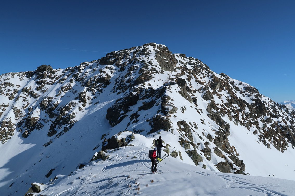 Es braucht auch etwas Erfahrung bei der Spuranlage - auch über etwas Klettergeschick für den Gipfelgrat (Stellen 1) sollte man verfügen.