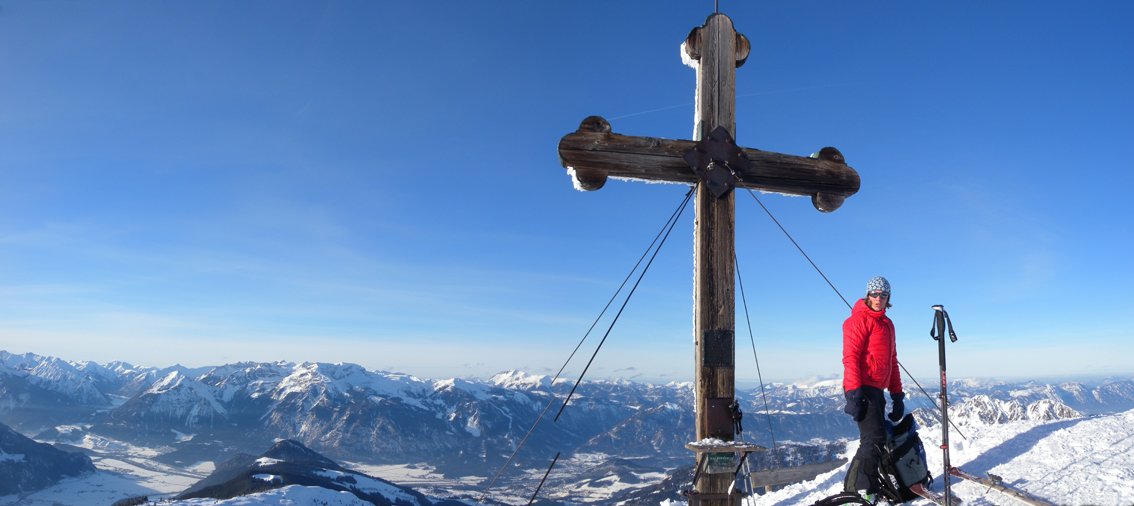 Sehr schöne Skitour, die vom Zillertal auf das Wiedersberger Horn führt. Unten startet man direkt in Hart beim Kirchturm und erreicht nach fast 1500 Hm den schönen Aussichtsgipfel am Westrand der Kitzbüheler Alpen. Gewaltige Skihänge - sowohl im oberen als auch im unteren Teil - machen die Tour bei ausreichender Schneelage zum Hochgenuss! Der Anstieg gehört sicher zu den besten Touren im vorderen Zillertal.