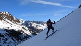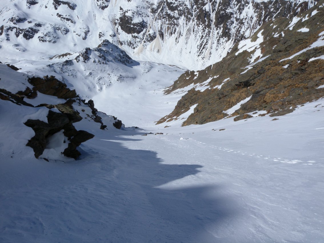 Sehr steile Hänge auf dem gesamten Anstieg, d.h. hohe Lawinengefahr - nur bei sicheren Schneeverhältnissen machbar.